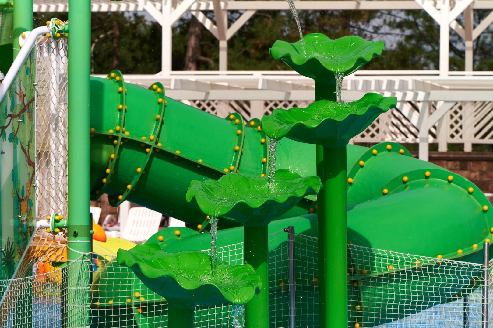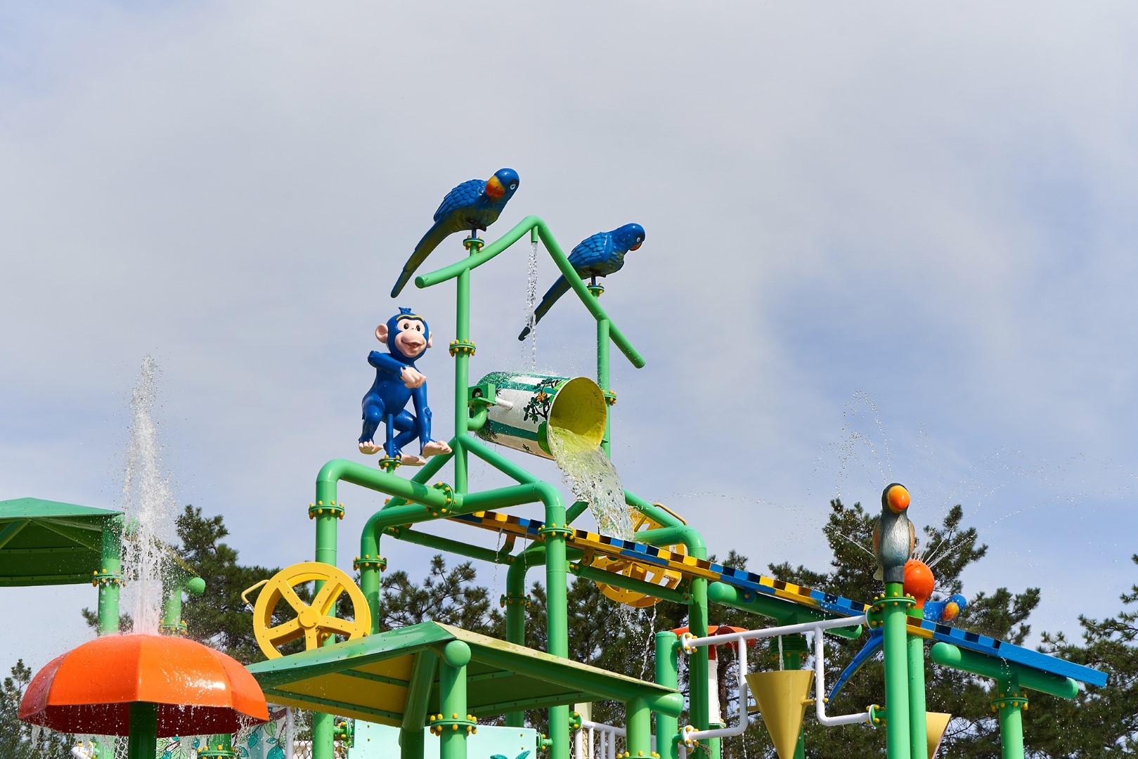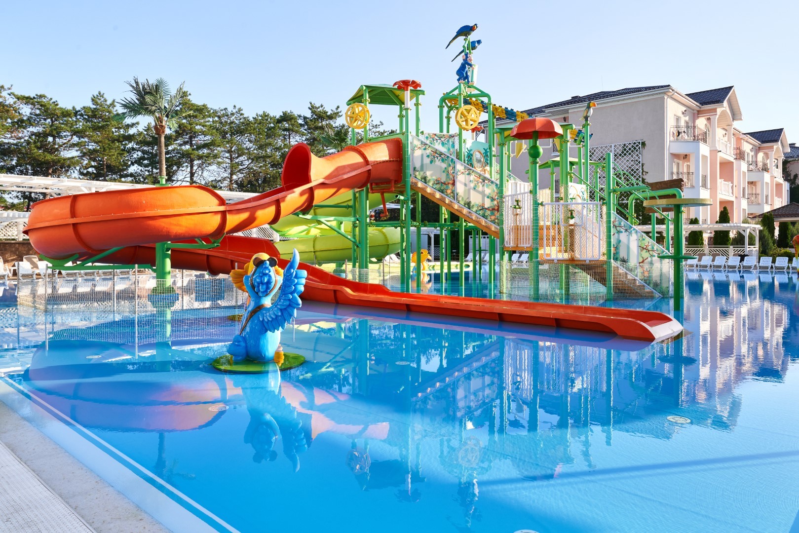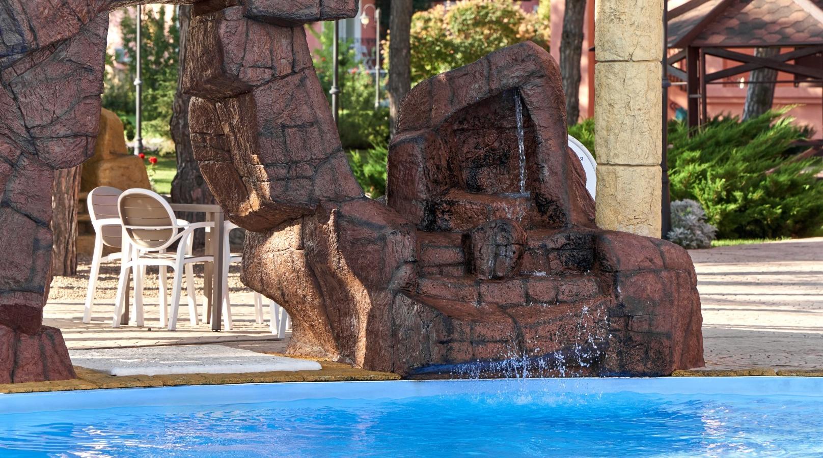При благоприятных погодных условиях для детей работает новый акваплей - открытый подогреваемый детский бассейн с водными аттракционами 6+
