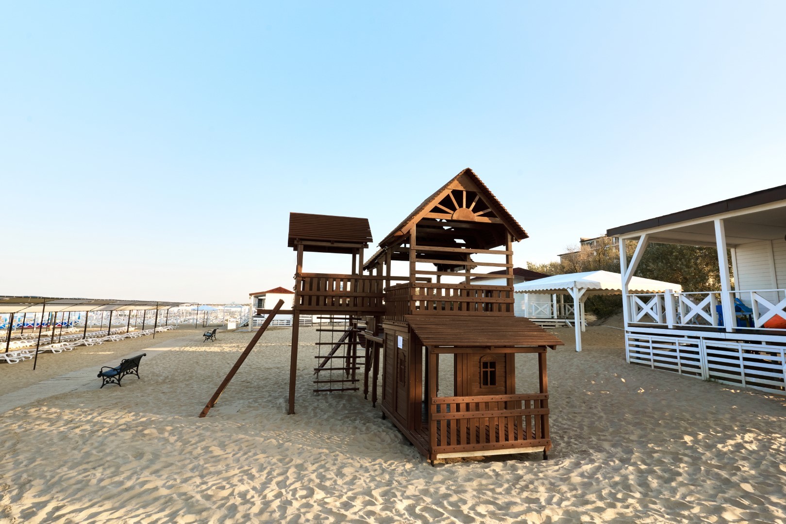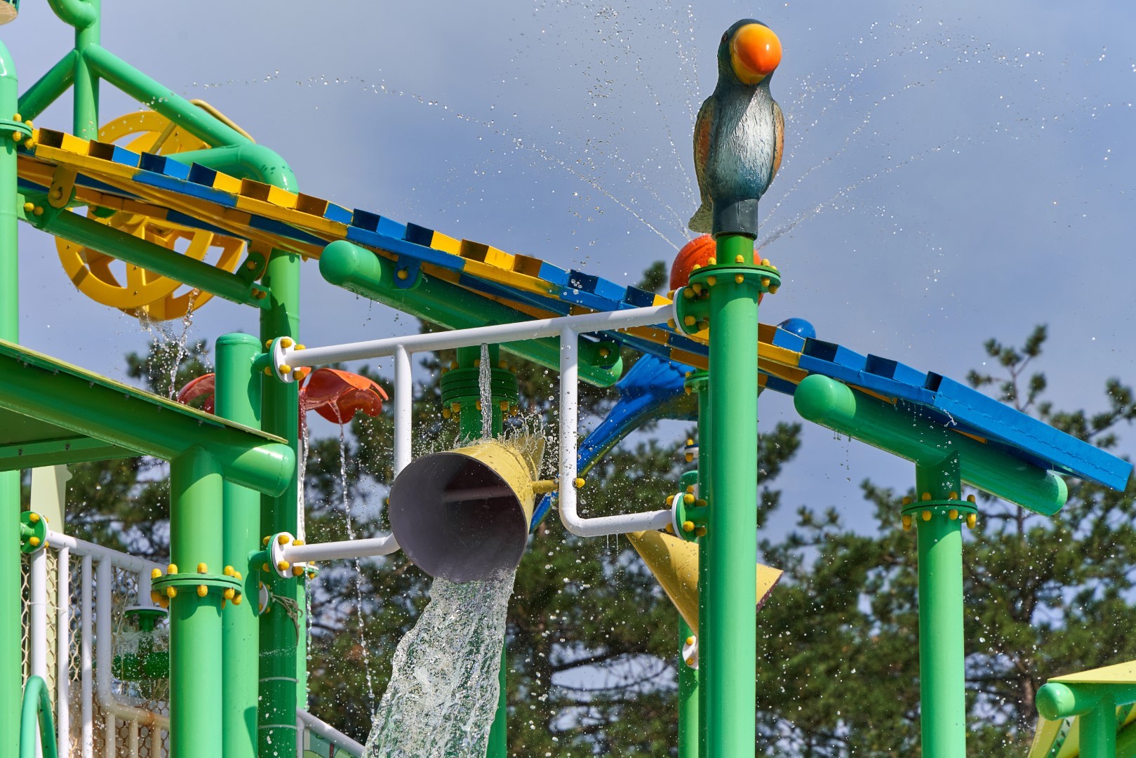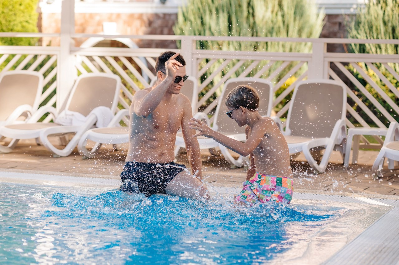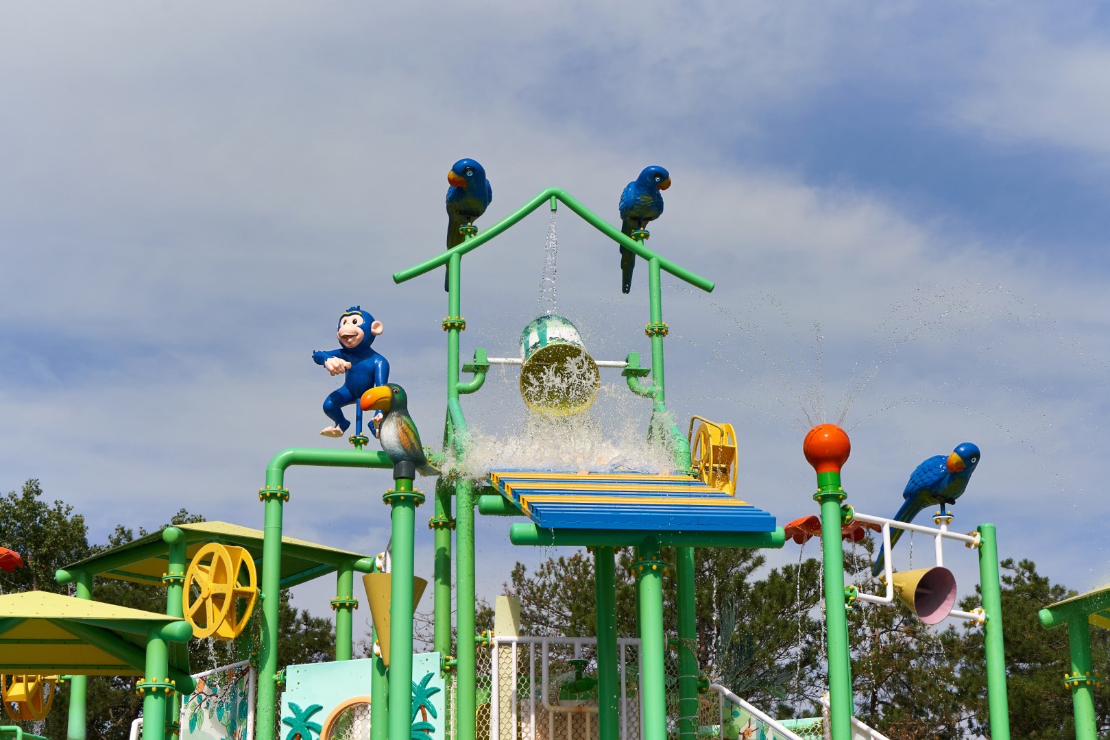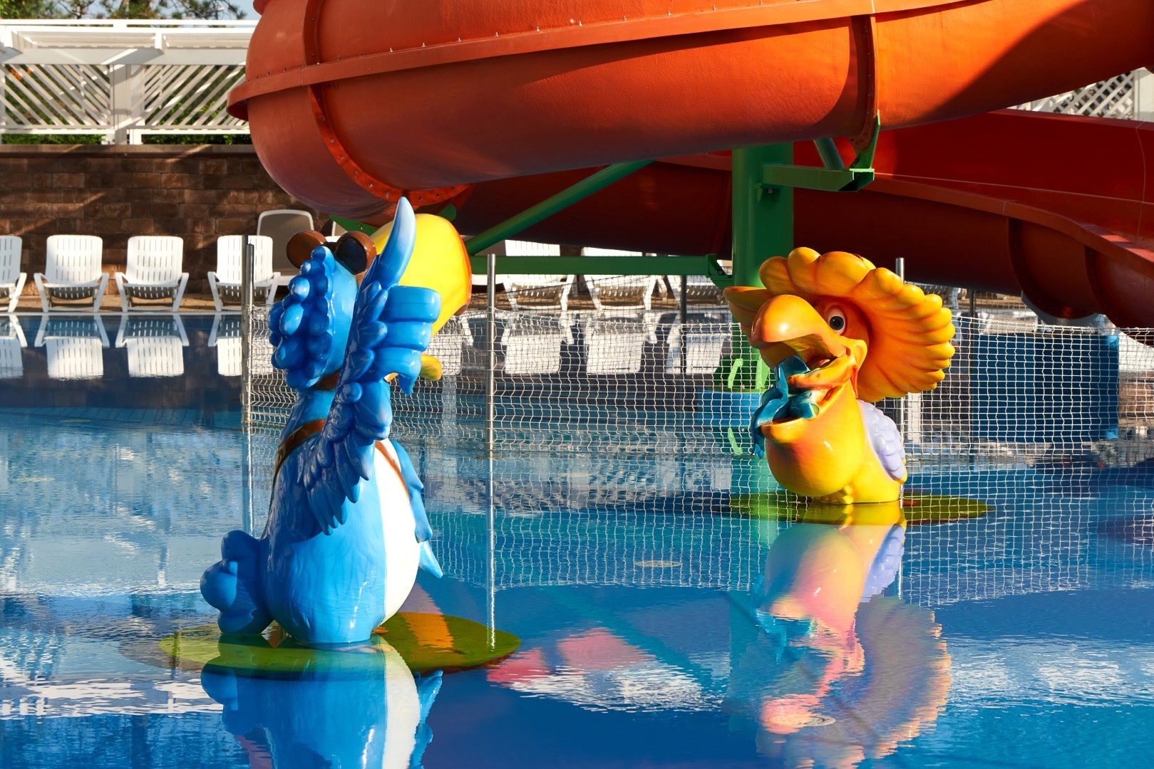 При благоприятных погодных условиях для детей работает новый акваплей - открытый подогреваемый детский бассейн с водными аттракционами 6+