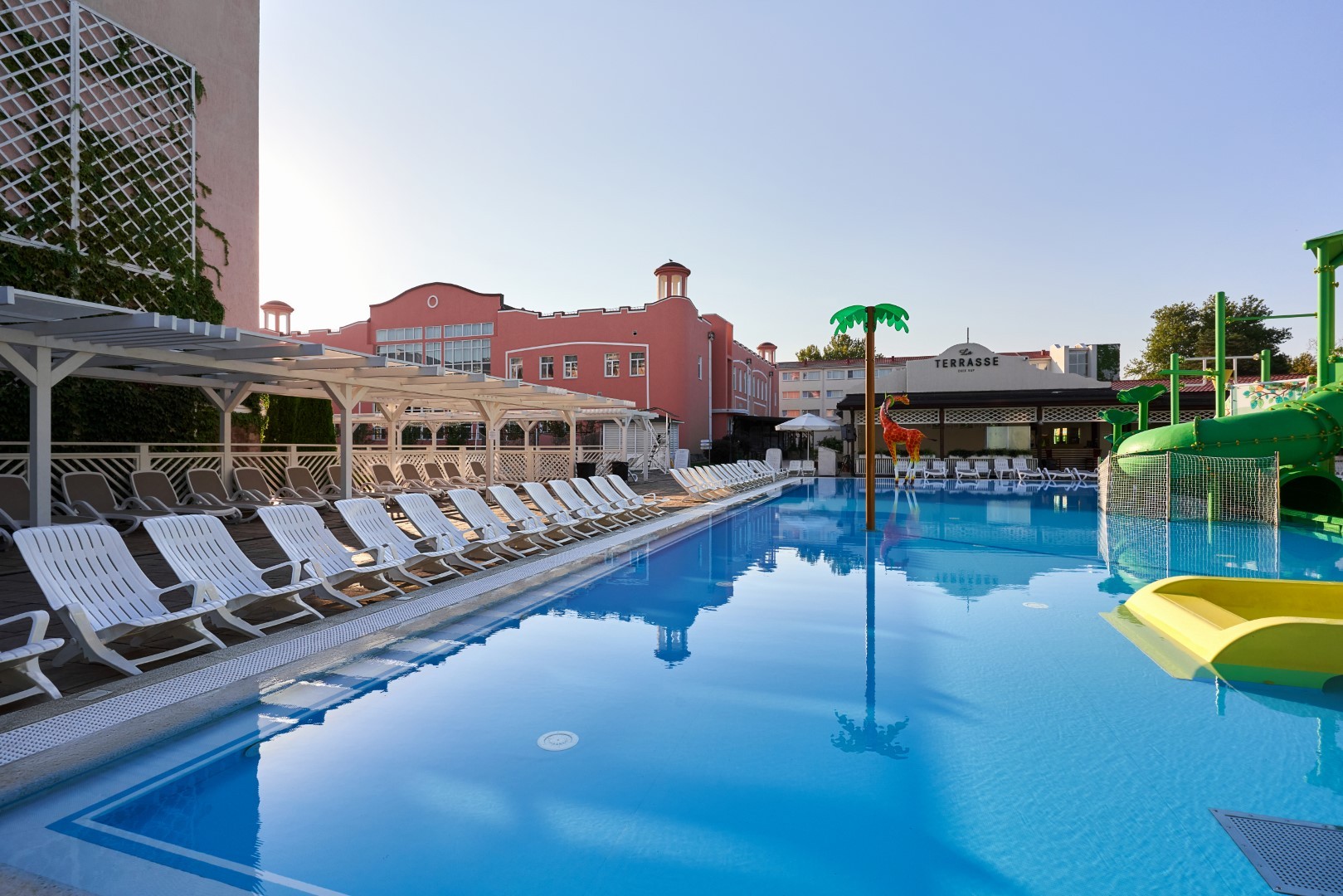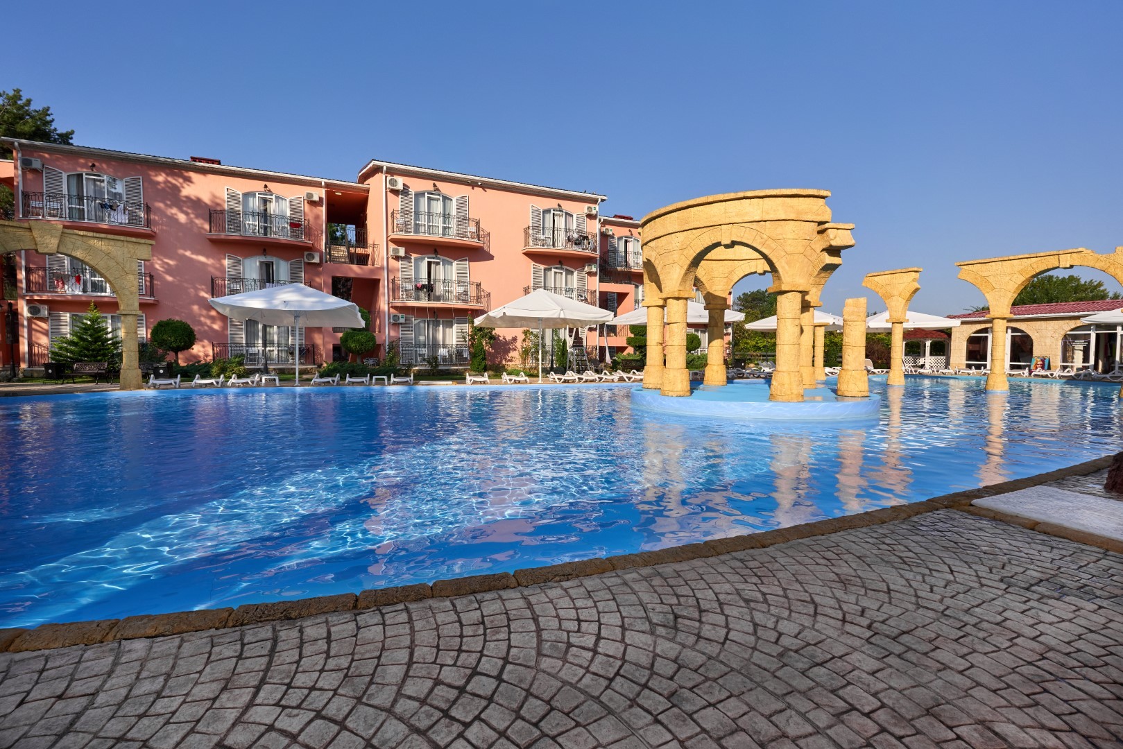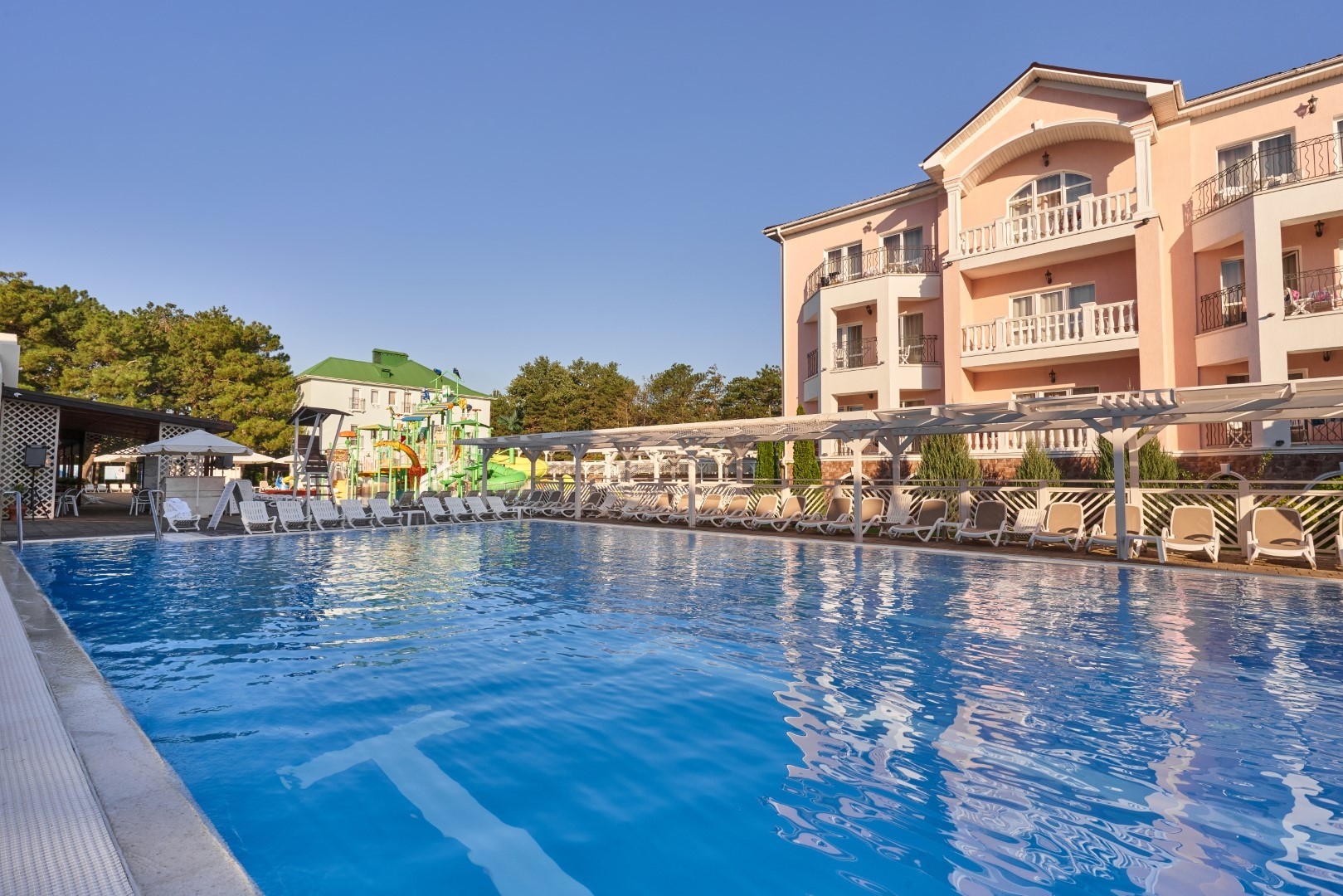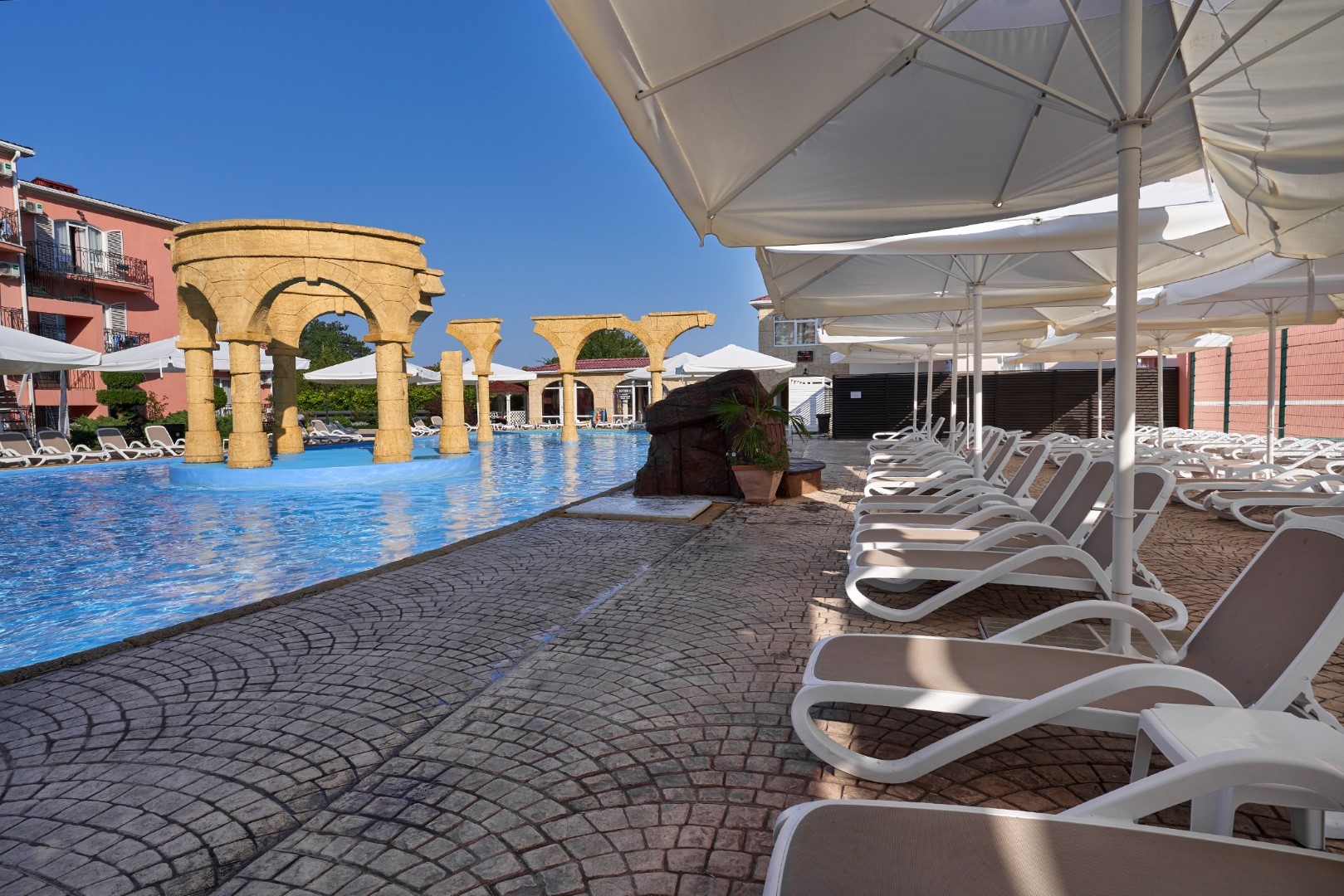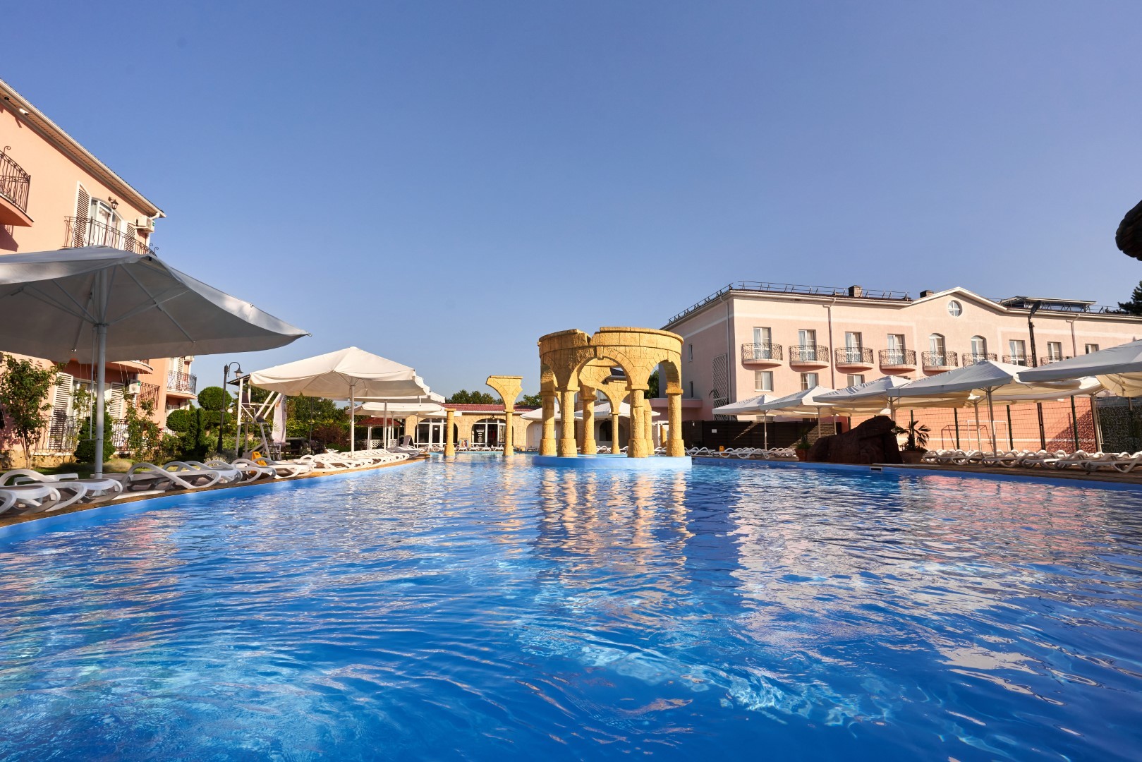 На территории Alean Family Riviera находятся сразу несколько бассейнов на любой вкус: открытые подогреваемые бассейны -с ротондой 26 – 29°С и спортивно-анимационный.