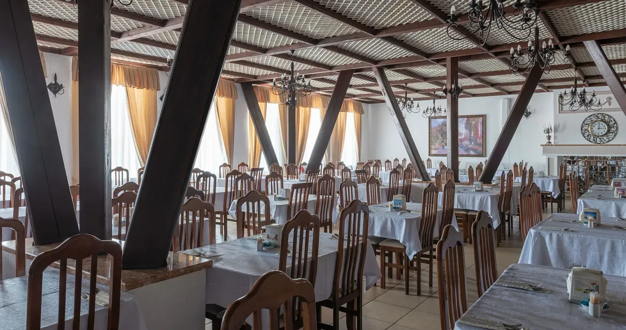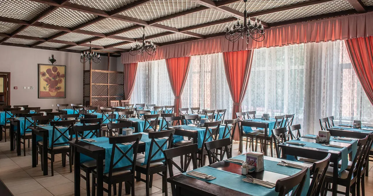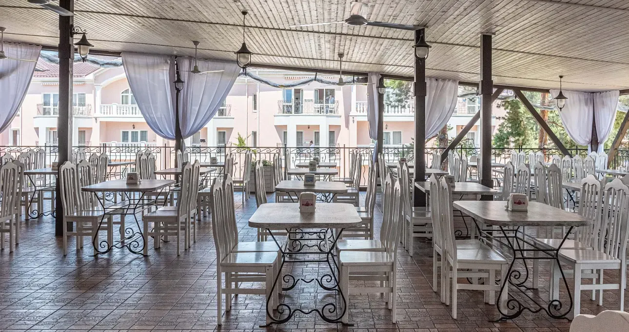 В основном ресторане ежедневно организуется питание по системе «шведский стол». Меню включает национальные кухни Франции, Италии, Греции, Кавказа и Кубани.