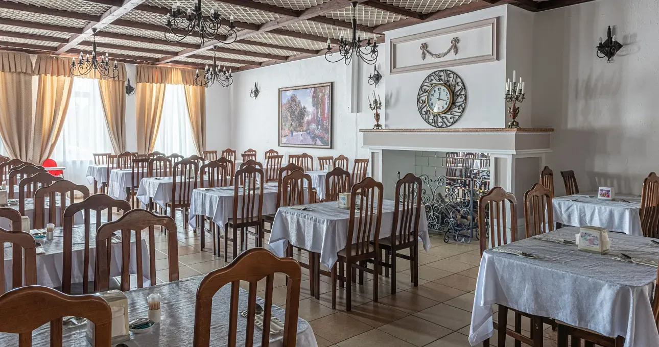 Меню ресторана включает широкий выбор закусок, салатов, горячих блюд из мяса и рыбы, супов, овощей и каш. Любители лёгкой еды найдут низкокалорийные блюда, а также алкогольные напитки высокого качества.